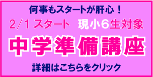 現小6生対象「中学準備講座」受講者募集中です。詳細はこちらの文字列をクリックしてください。